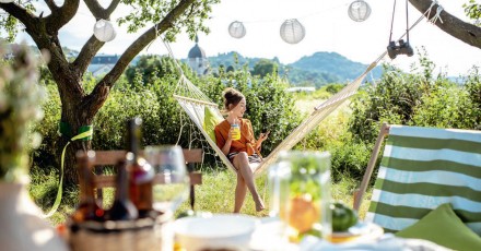 Kołysanie jako forma wprowadzania się w stan relaksu ma ugruntowane w badaniach podłoże fizjologiczne. To, że działa bardzo korzystnie na zasypianie oraz kontynuowanie spokojnego snu wiemy już od dziecka. Potwierdzono jednak, również to, że kołysanie sprzyja synchronizacji aktywności neuronów, które odpowiadają za konsolidację procesów pamięciowych (czyli mówiąc potocznie, pozwalają na prawidłowe utrwalanie nabytych informacji). Rytmiczna stymulacja mózgu podczas bujania, szczególnie w trakcie snu, przyczynia się do poczucia równowagi, poprawia procesy poznawcze, wzmacnia pamięć i orientację w przestrzeni. Przede wszystkim jednak daje nam głębokie i dosadne poczucie odprężenia. Latem więc koniecznie znajdźmy sposób na kołysanie się na świeżym powietrzu – na działce, w ogrodzie, na tarasie czy nawet na balkonie. Propozycji i rozwiązań znajdziemy bardzo wiele, zaczynając od tradycyjnych hamaków, poprzez sznurkowe huśtawki, po zawieszane na stelażach fotele w formie plecionych kokonów.